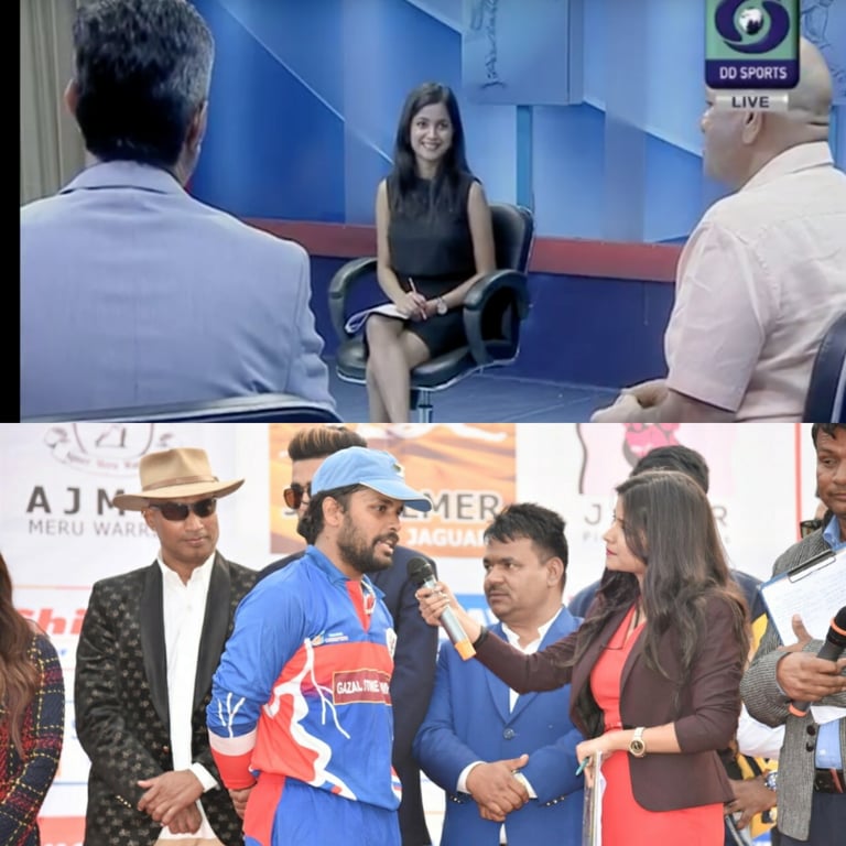 Megha Sinha is a freelance television sports presenter and corporate emcee who has worked with DD Sports, All India Radio, The Lallantop, and NEO Sports. She has covered major events including the Olympics, Asian Games, FIFA U-17 World Cup, IPL, World Test Championship, T20 World Cup, and Paralympics. She has also hosted Fourth Umpire and anchored leagues like RCL, BDSL, Pro-Masters, and SILF Cricket League.